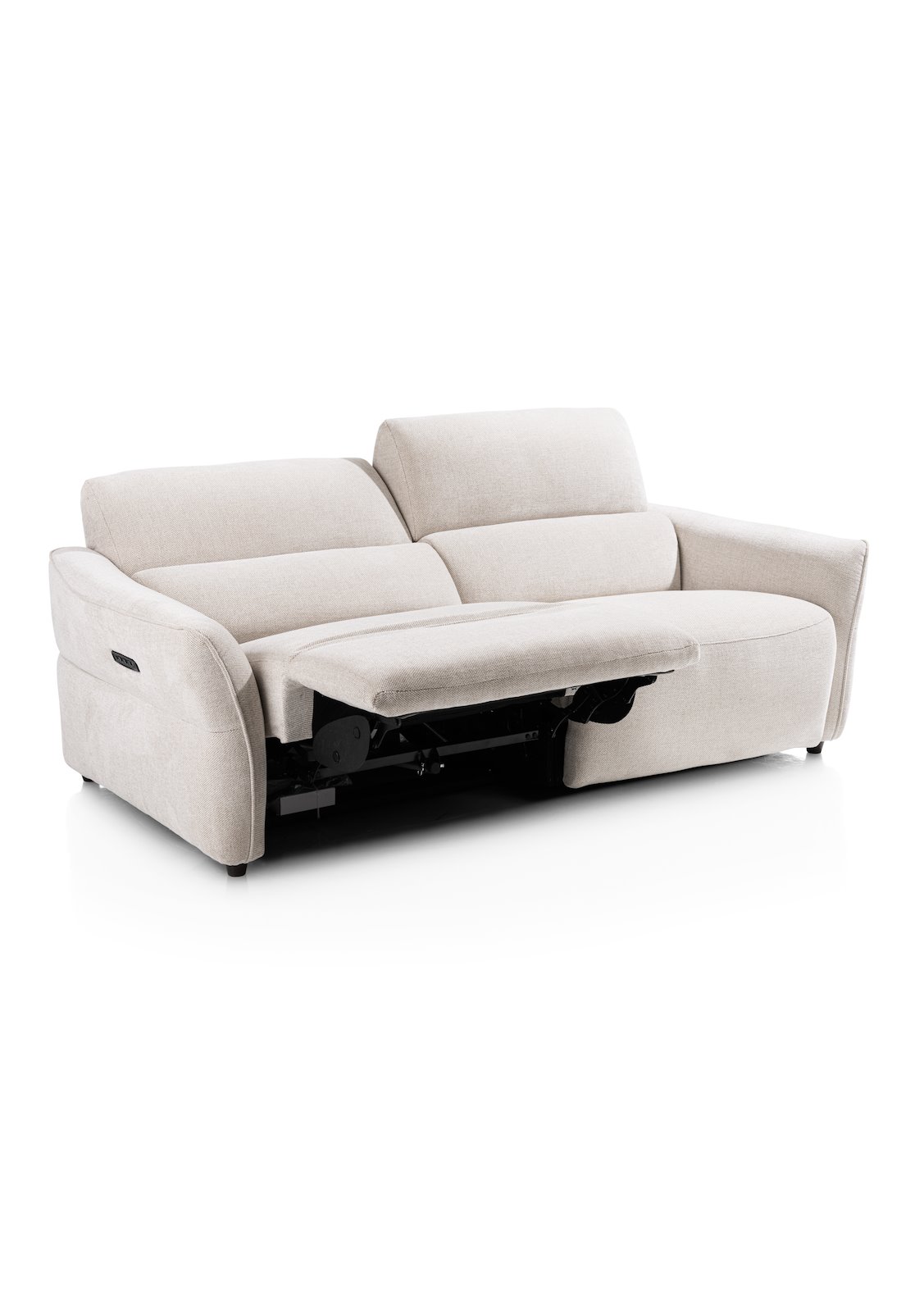 Dan ontvang je de 3-zits bank in stof Vada in de kleur beige met 2x de 2-motorige relaxsysteem in de afmeting breedte 200 cm × diepte 101/149 cm × hoogte 90 cm, precies zoals getoond op de afbeeldingen.