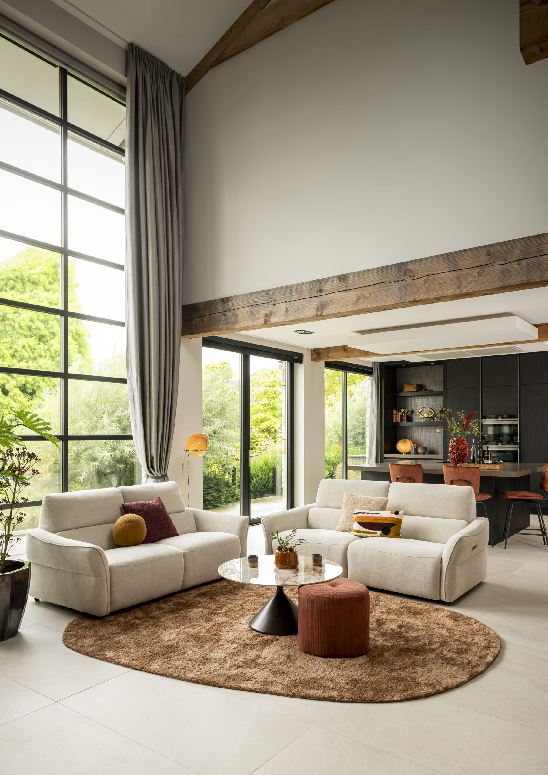 Voor wie houdt van extra luxe, is de Anglet ook optioneel elektrisch verstelbaar met een 2-motorig relaxsysteem per zitplaats. De rug- en voetensteunen zijn onafhankelijk van elkaar te bedienen, zodat je altijd jouw ideale zit- of ligpositie vindt. Met één druk op de knop keert de bank eenvoudig terug naar de basisstand — comfort en gebruiksgemak in één.