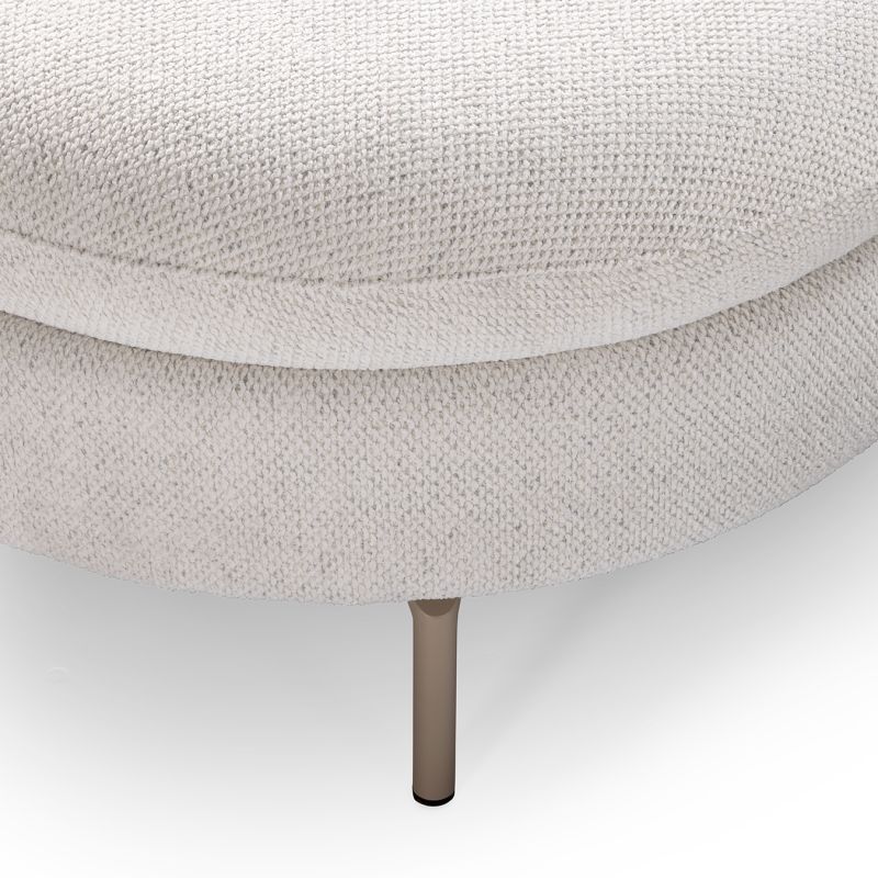 Zoals afgebeeld is de bank bekleed met de stof Macan in de kleur ivory. De afgeronde vormen geven de Avalon een zachte, vriendelijke uitstraling, terwijl de strakke belijning en de lichte stof zorgen voor een moderne en stijlvolle afwerking. Zo creëer je een bank die rust en elegantie uitstraalt én uitnodigt om lekker in weg te zakken.