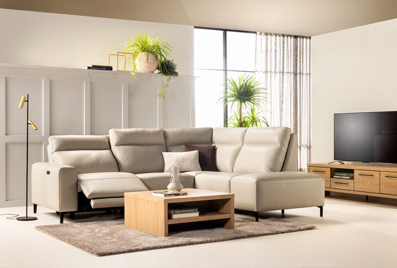 Goed om te weten: bestel je de Belfast via onze webshop, dan ontvang je het model zoals op de foto uitgevoerd in Leer Buna naturel met ottomaan en voorzien van elektrische verstelling. Wil je een andere uitvoering? Laat het ons weten – we denken graag met je mee.