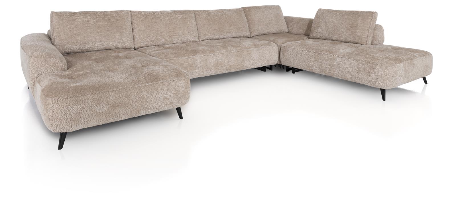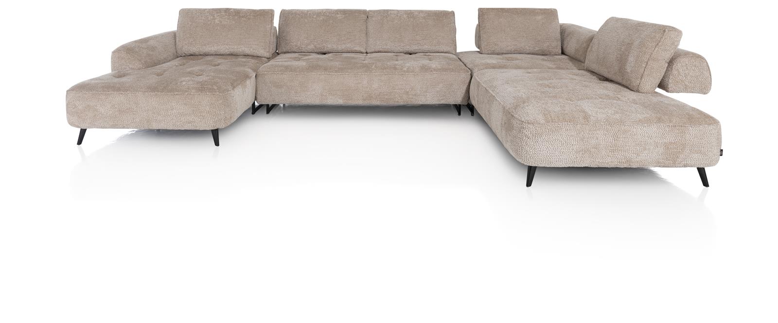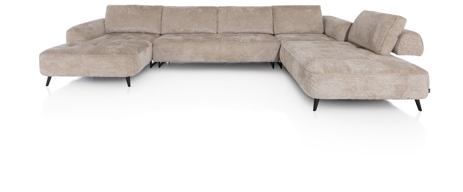 Bestel je via onze webshop, dan ontvang je het model zoals op de foto getoond, uitgevoerd met verstelbare rugleuningen, HR-koudschuim en bekleed in Derby chenille in de kleur beige. Wil je een andere opstelling, stof, kleur of opties? Laat het ons weten – we denken graag met je mee en maken samen jouw ideale bank.