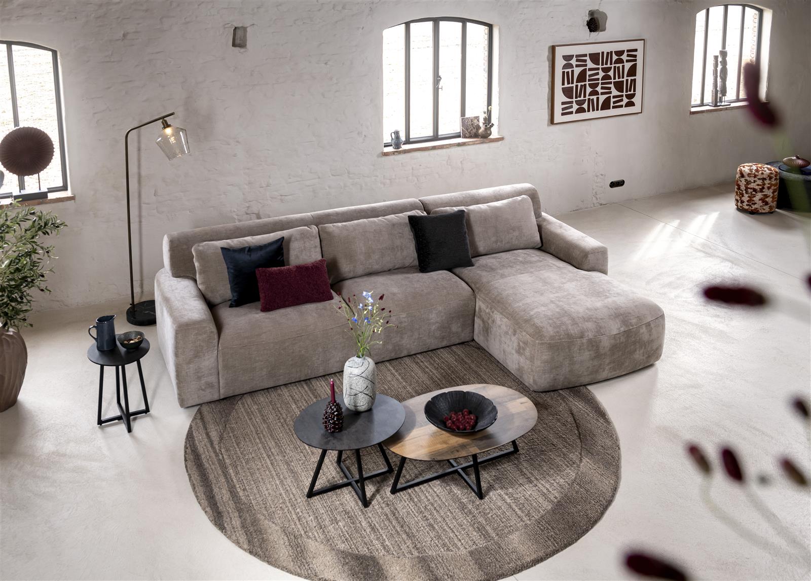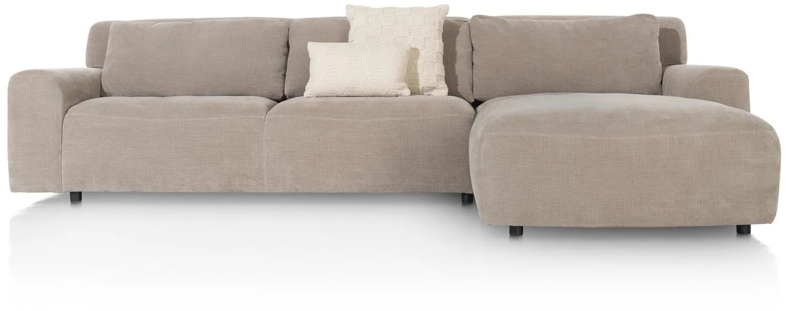 Goed om te weten: bestel je de bank via de webhop dan ontvang je een 3-zits bank met armleuning links en een longchair rechts in de stof Cadiz in de kleur lever met een standaard vulling in de bank.