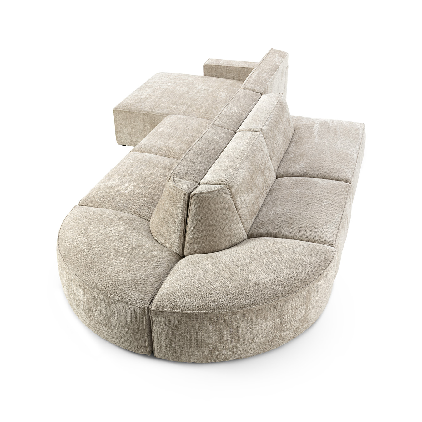 Goed om te weten: Bestel je via de webshop? Dan ontvang je de uitvoering zoals afgebeeld, als modulaire bank 1,5-zits met arm + 1,5-zits + hoek + eiland in stof cremon beige 14.