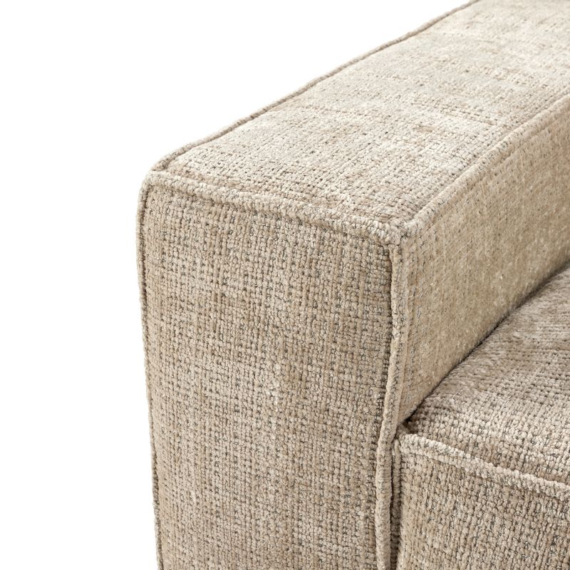 Het ontwerp is modern en krachtig, met strakke lijnen en royale zitkussens die direct uitnodigen om te ontspannen. De brede armleuningen geven de bank een stoere uitstraling, terwijl de zachte stoffering zorgt voor een warme en toegankelijke sfeer in huis.