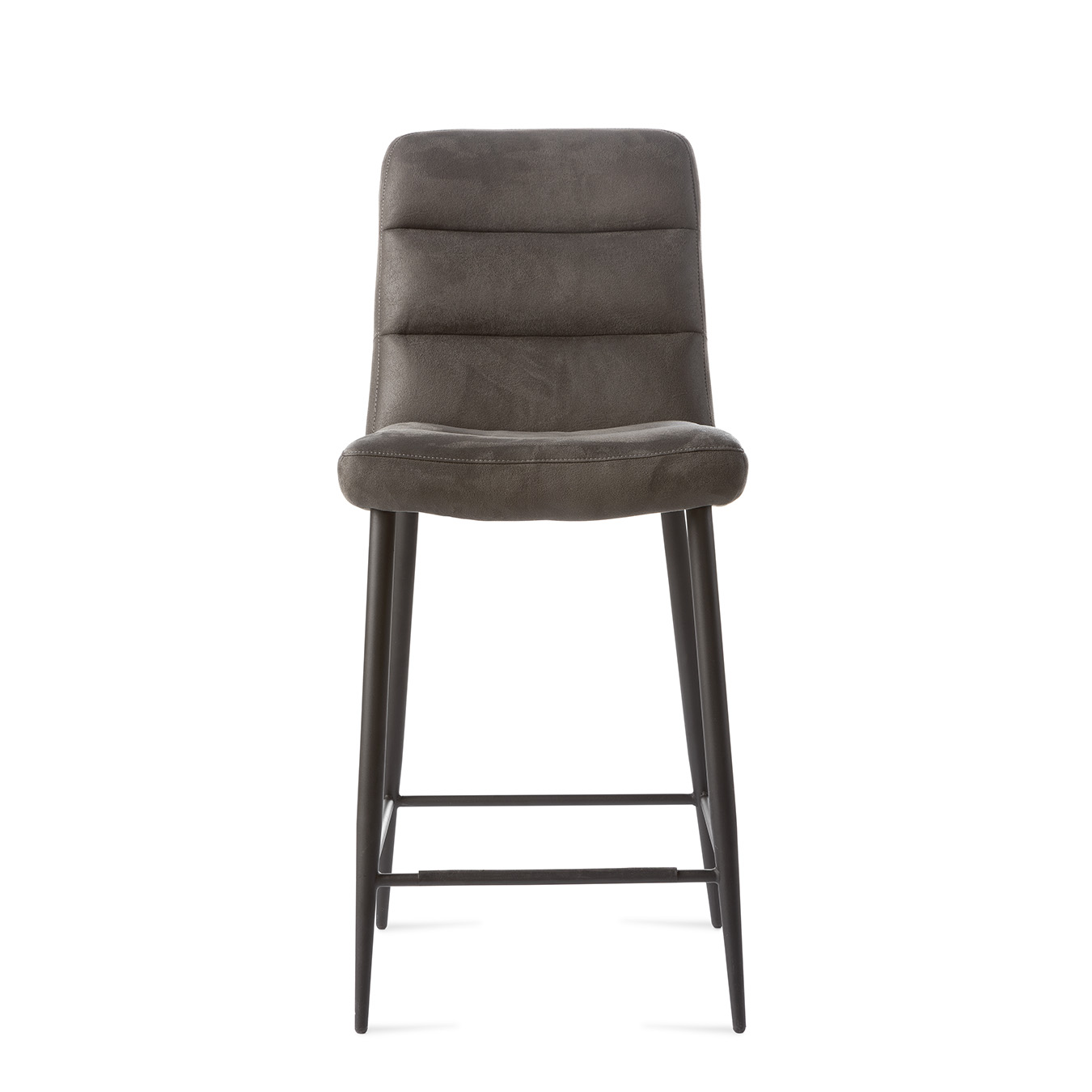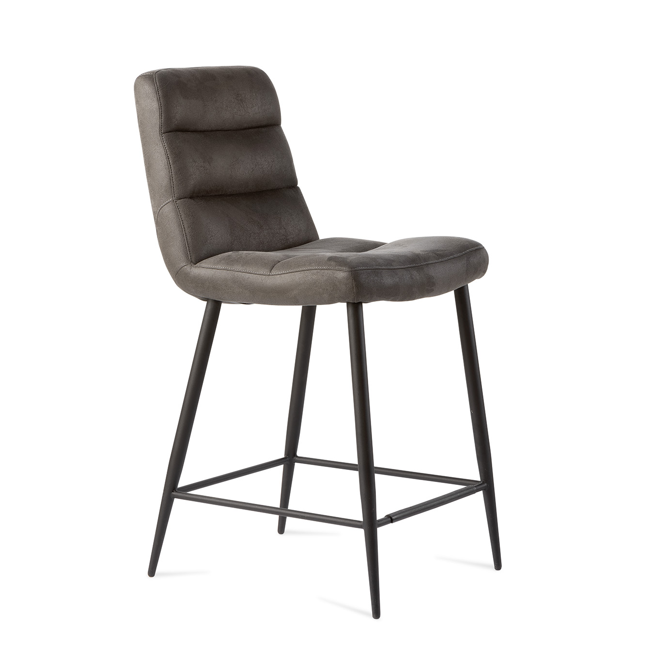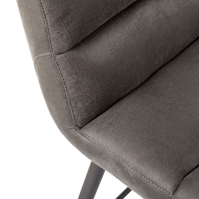 De horizontale stiknaden over de rug en zitting geven de stoel extra diepte en karakter. Het zwarte metalen onderstel is stevig en voorzien van een handige voetensteun, waardoor je altijd comfortabel zit.