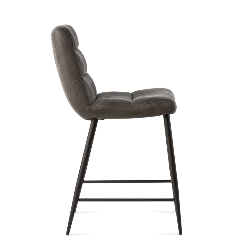 De Miles barstoel in antraciet geeft jouw keuken of bar een stoere, eigentijdse uitstraling. Zoals afgebeeld is de barkruk bekleed met de zachte stof Chicago, die comfortabel aanvoelt en tegelijk een industriële look heeft.