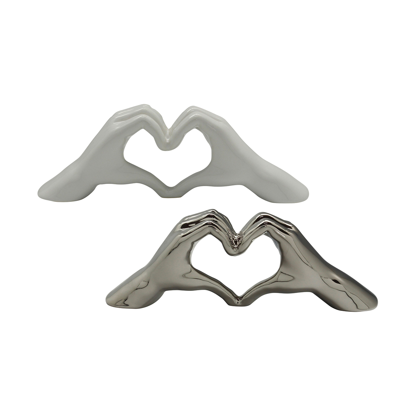 Het Hart handen beeld is een symbool van liefde en verbondenheid. Uitgevoerd in keramiek en beschikbaar in de kleuren zilver en wit, straalt dit beeld elegantie en rust uit. De sierlijke vormgeving maakt het een echte eyecatcher die in elke woonruimte sfeer toevoegt.Dankzij de neutrale uitstraling laat dit beeld zich eenvoudig combineren met uiteenlopende woonstijlen. Of je het nu een prominente plek geeft op een dressoir, in een open kast of op een sidetable: het Hart handen beeld brengt altijd een warm en stijlvol accent in huis.