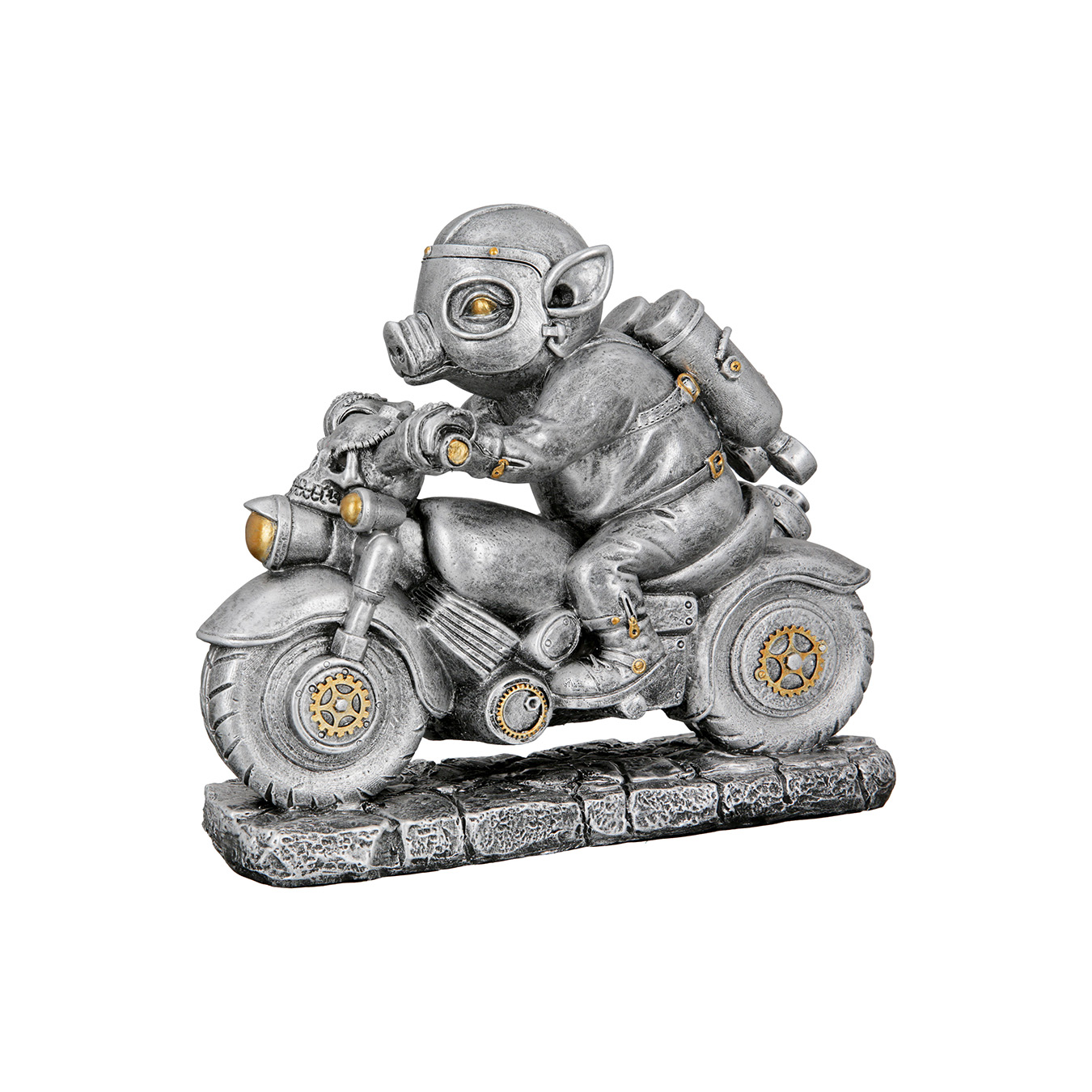 Het Steampunk varken beeld is een speels en stijlvol accessoire dat direct warmte en karakter toevoegt aan jouw interieur.