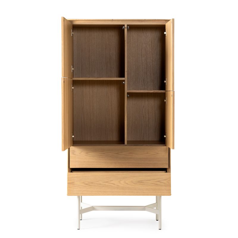 Met zijn stone washed eiken fineer en greige metalen onderstel is de Genua bergkast een stijlvolle toevoeging aan elk interieur.