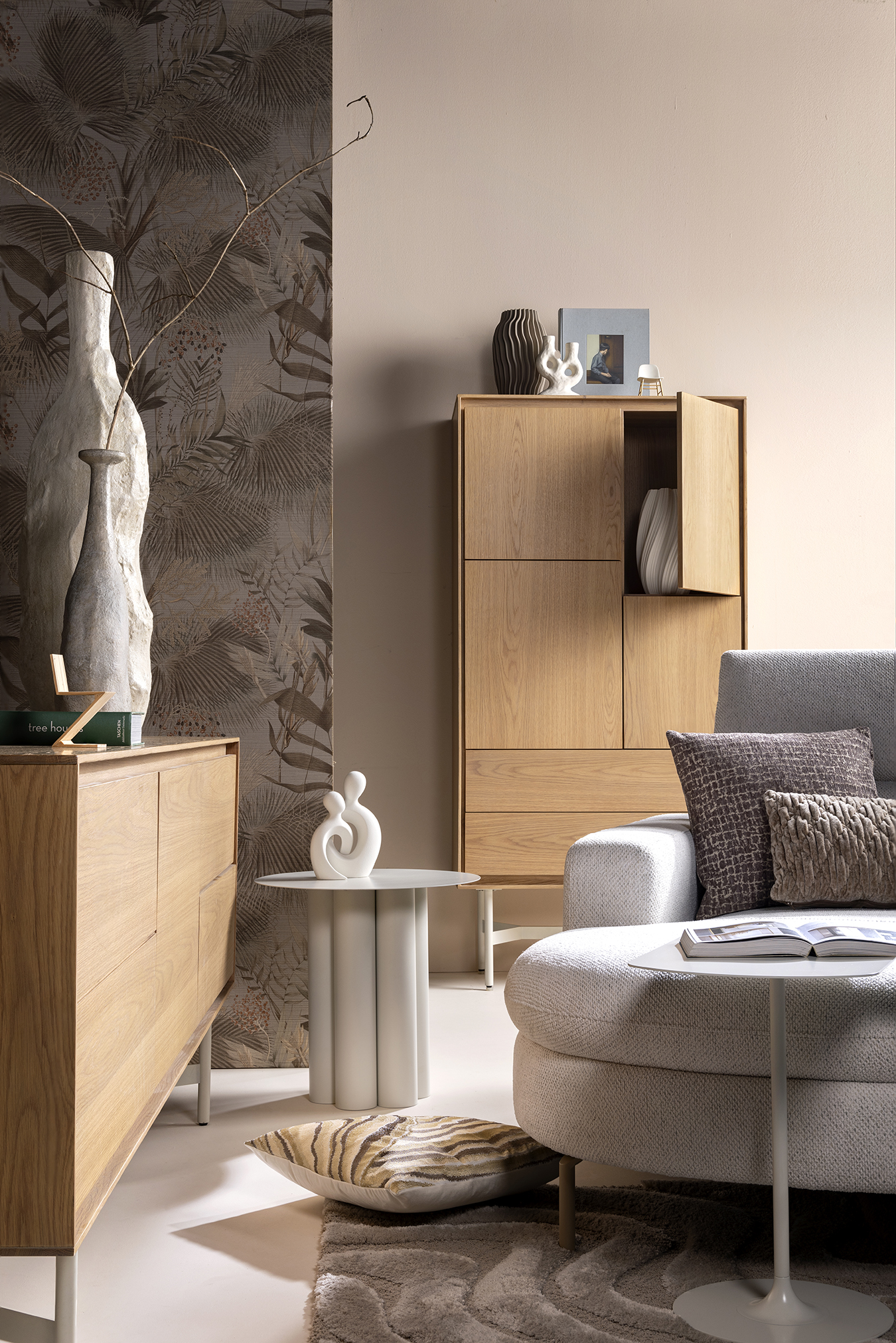 De Genua bergkast combineert natuurlijke elegantie met moderne verfijning. Het hoogwaardige eiken fineer in een stone washed white afwerking geeft de kast een lichte en eigentijdse uitstraling, terwijl het greige metalen onderstel een subtiel modern accent toevoegt. Zo ontstaat er een perfecte balans tussen warmte en frisheid, waardoor de kast naadloos aansluit bij de Modern Mix woonstijl.Naast zijn prachtige design is de Genua bergkast ook bijzonder praktisch.