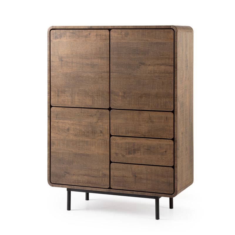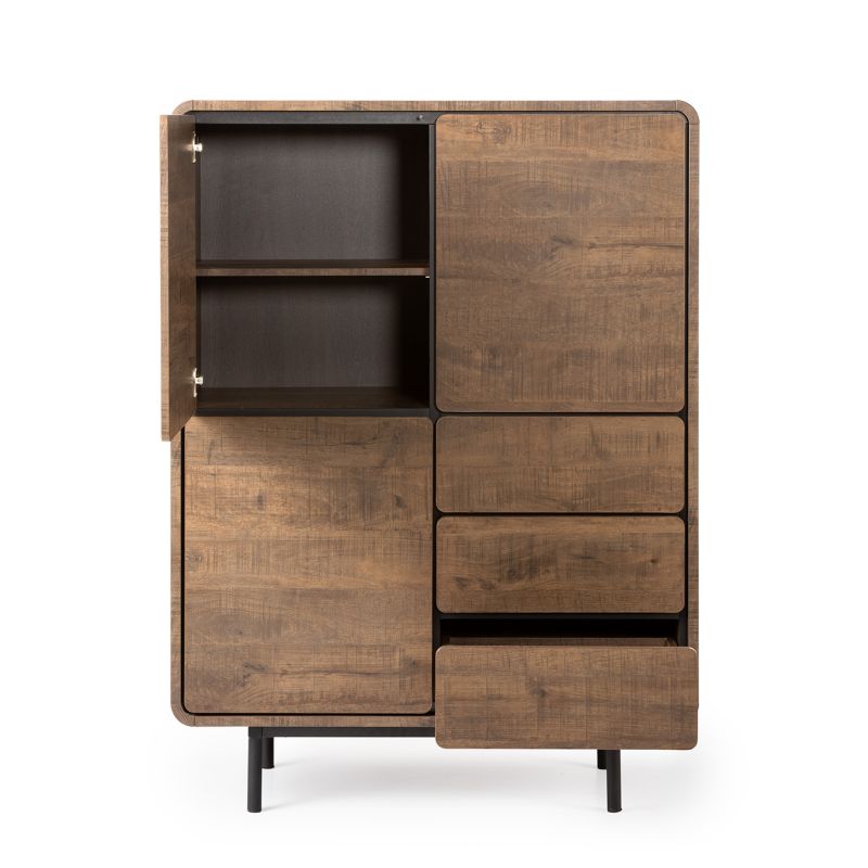 De warme kleur dark mango geeft de kast een retro uitstraling, terwijl het stalen onderstel zorgt voor een moderne twist. Zo past de kast moeiteloos in zowel een strak als een sfeervol interieur.