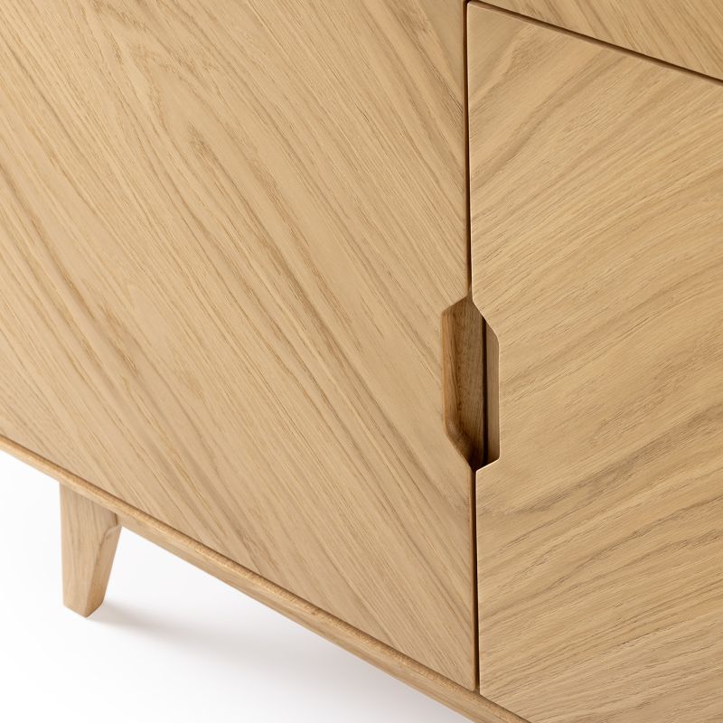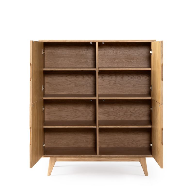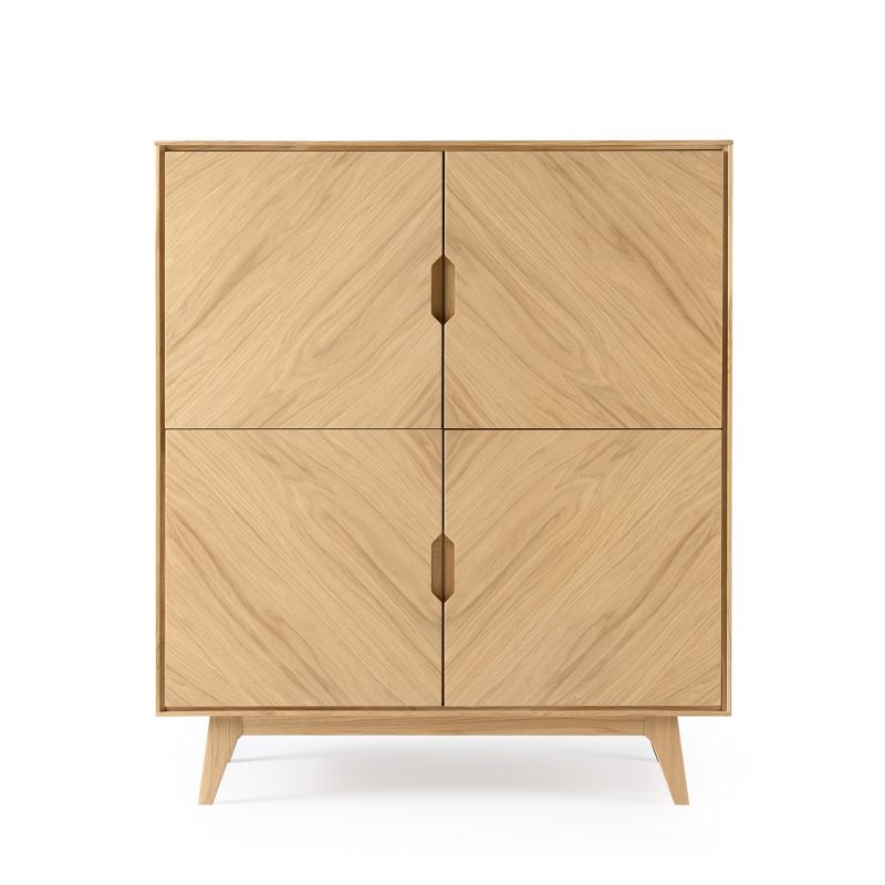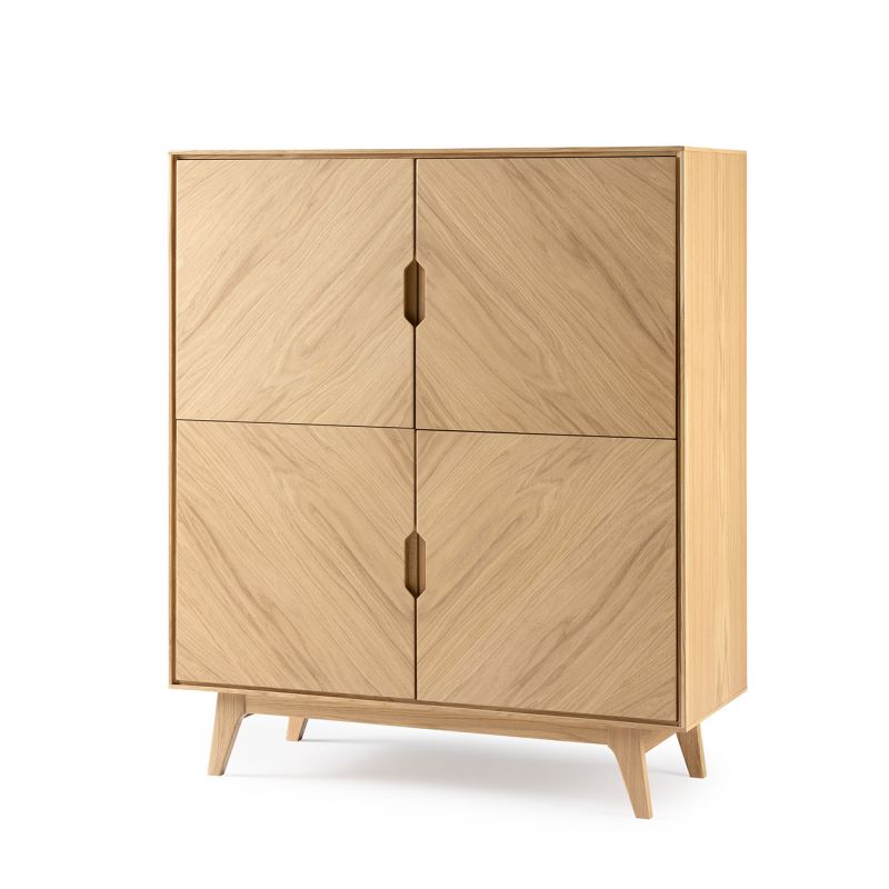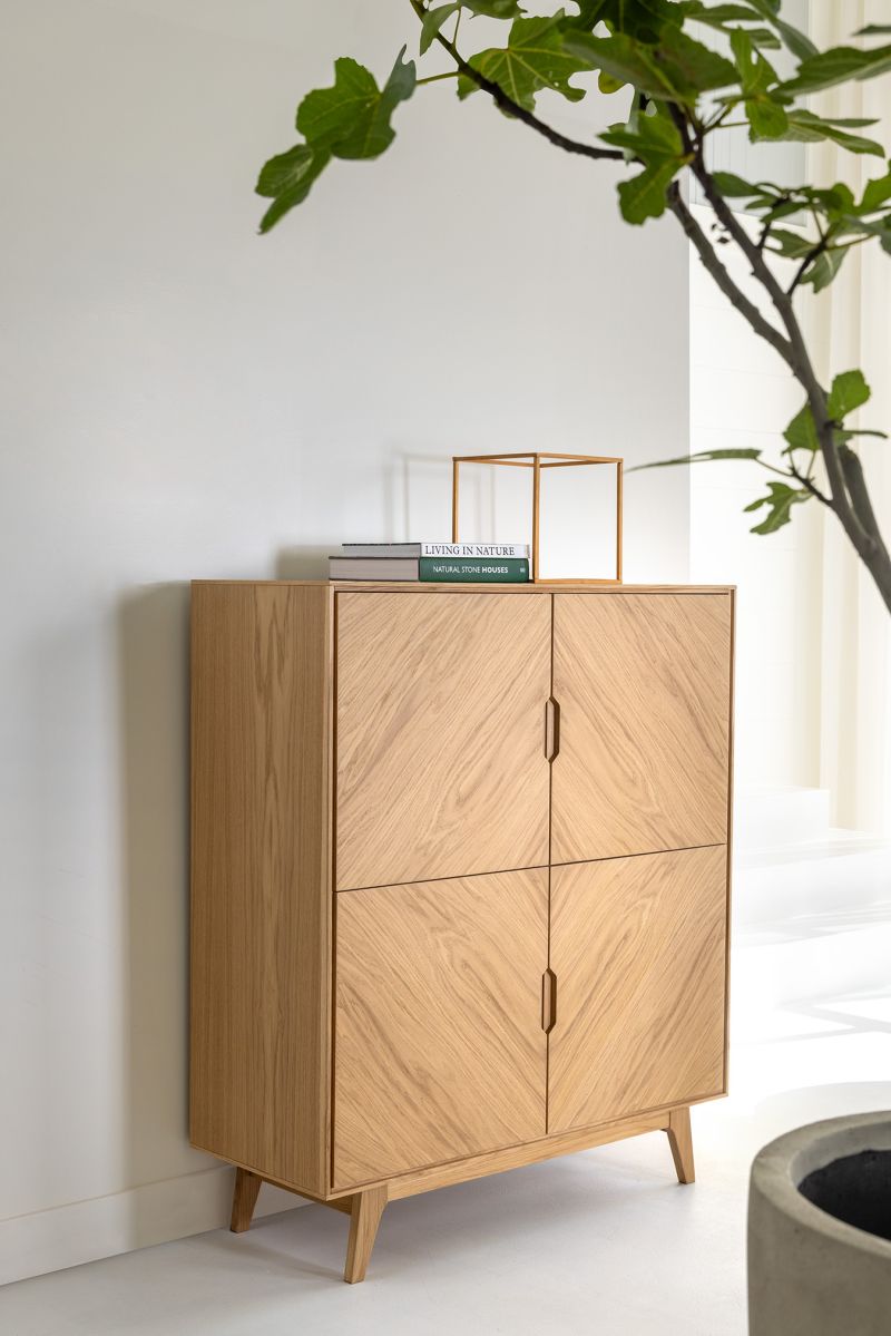 De Luzern bergkast is een stijlvol meubel dat de natuurlijke schoonheid van eiken fineer combineert met een verfijnde vormgeving.