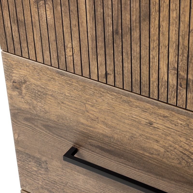 Het zwarte metalen onderstel geeft de bergkast een stoere, eigentijdse touch en maakt het meubel eenvoudig te combineren met andere stijlen en meubels.