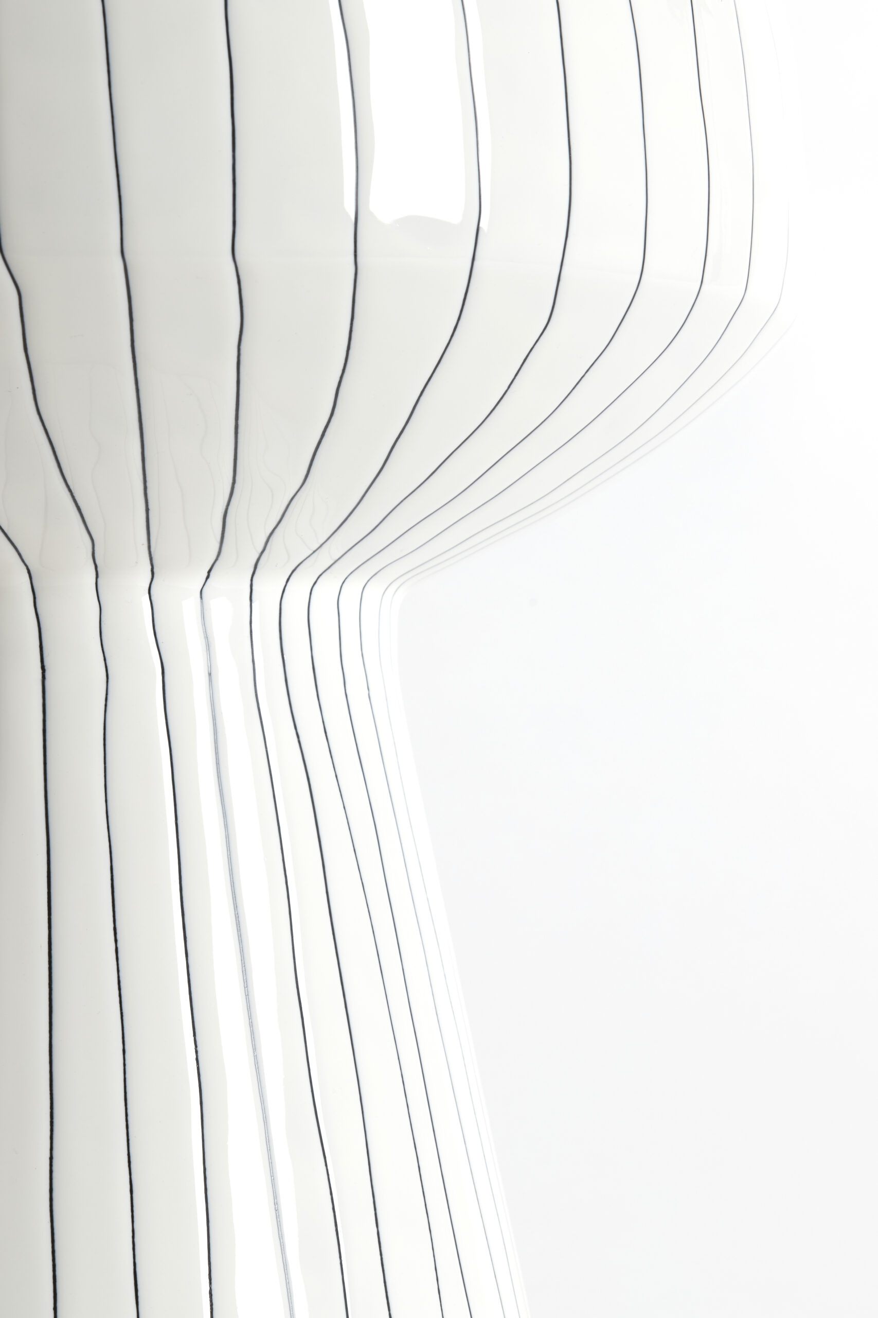 Uitgevoerd in crèmekleurig aluminium met een subtiel lijnenspel, straalt deze tafel moderniteit en elegantie uit.