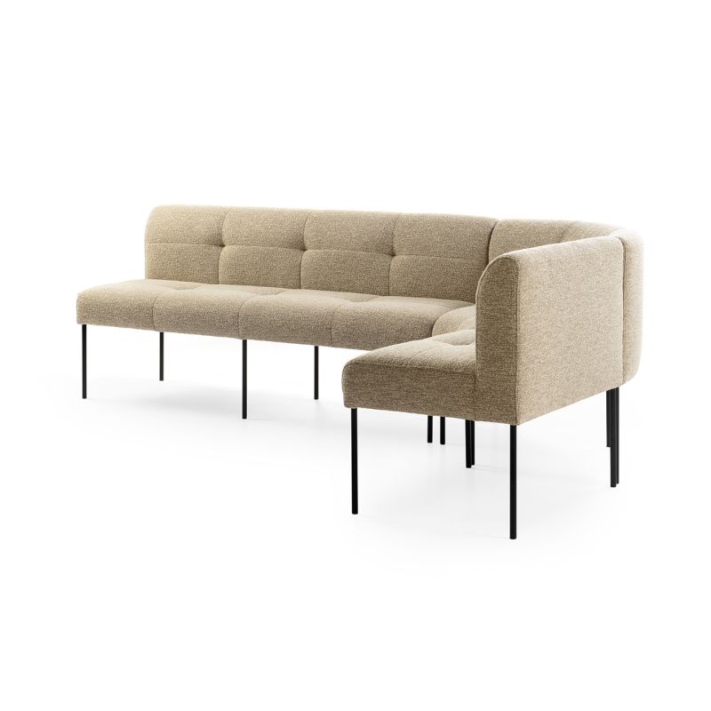Goed om te weten: bij een bestelling via onze webshop wordt de Skye eetkamerbank geleverd in stof Lodge, kleur sand, met een zwart metalen onderstel, zoals getoond op de afbeeldingen.