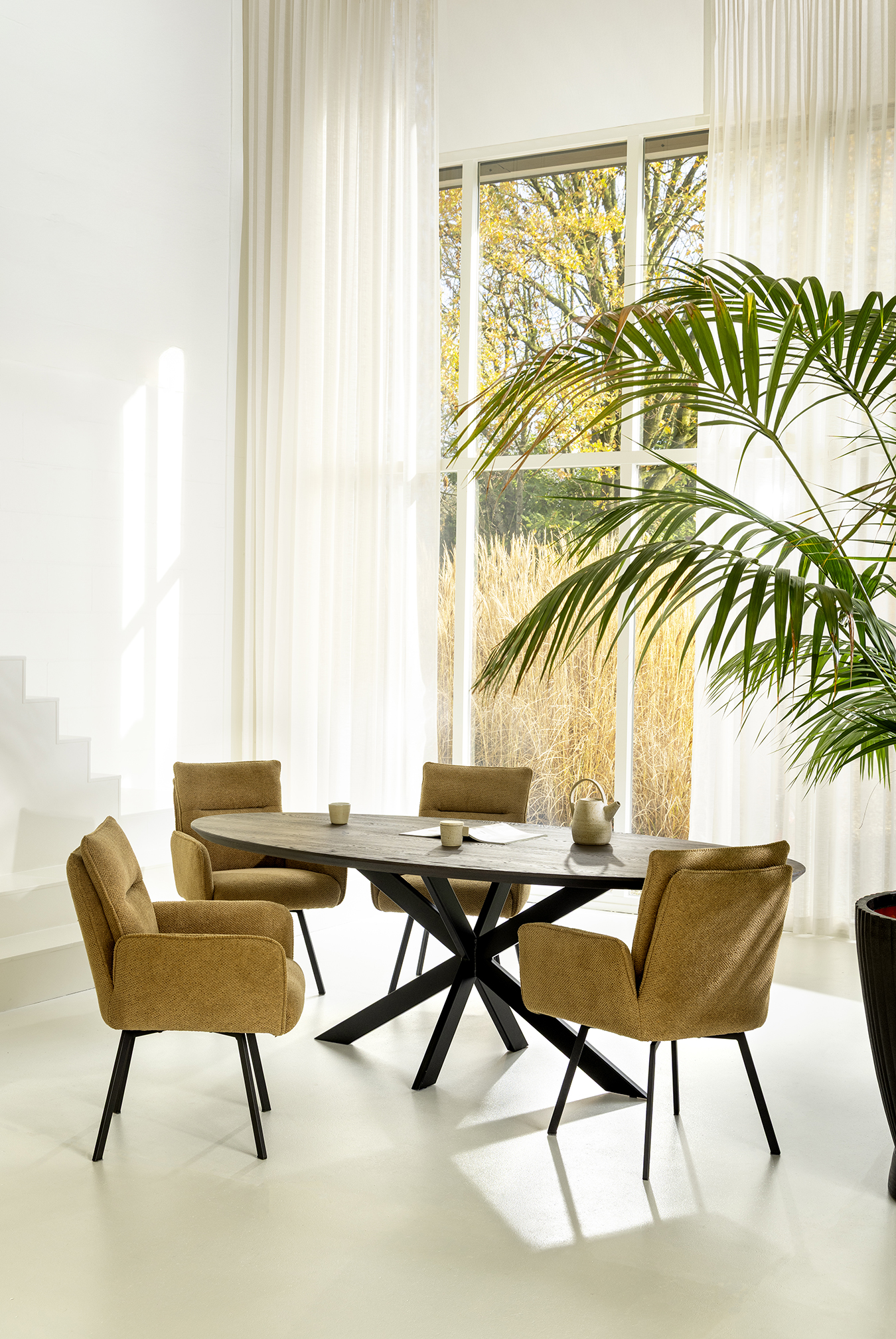 De comfortabele armleuningen en de verfijnde afwerking maken Brenn ideaal voor lange, gezellige avonden aan tafel.