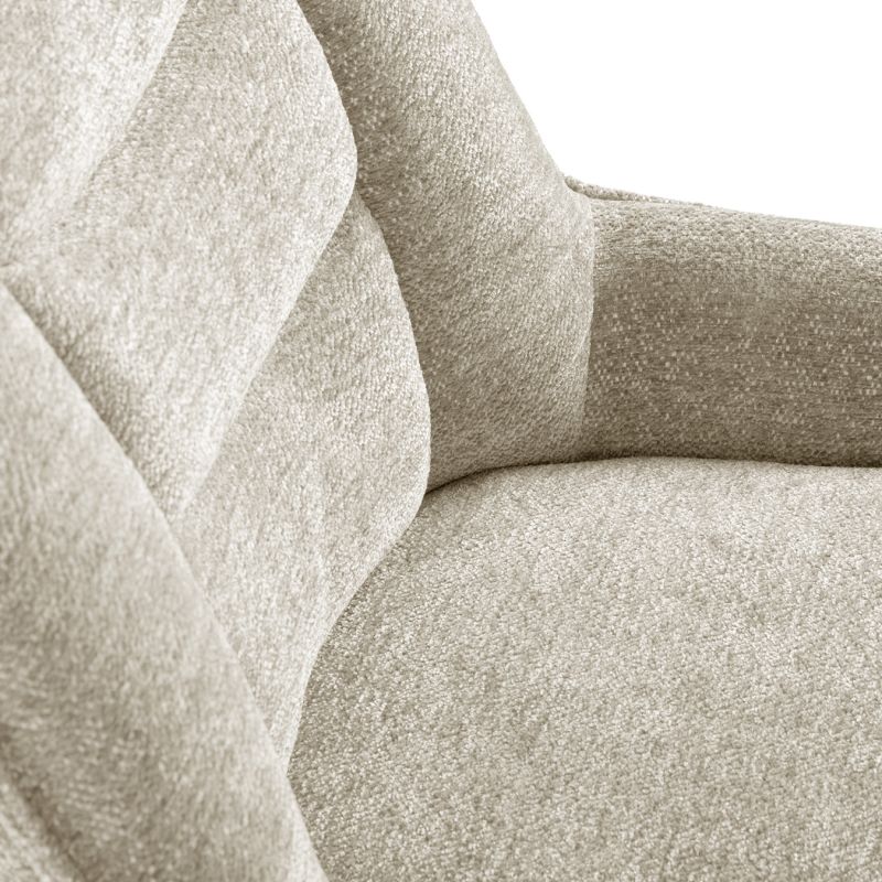 De zachte tint van de stof Raven, verkrijgbaar in de kleuren beige, hazel en taupe, zorgt voor een rustige basis die zich moeiteloos laat combineren met diverse kleuren en materialen.