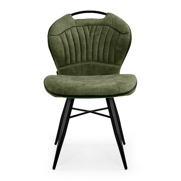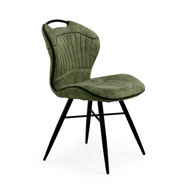 Bekleed met hoogwaardige Luxor-stof in de kleur mossgroen, straalt deze stoel pure elegantie uit.