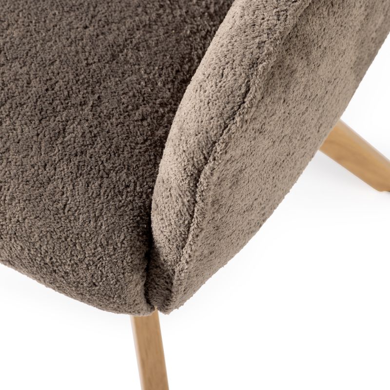 Goed om te weten: bij een bestelling via de webshop wordt de Sven eetkamerstoel geleverd in stof Boogie, kleur taupe, met houten onderstel en een draaibaare kuip, zoals getoond op de afbeeldingen.