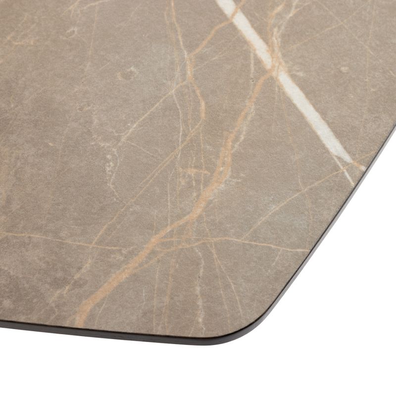 Het blad is uitgevoerd in HPL Lugano Marble: een materiaal dat de luxe uitstraling van marmer geeft, maar tegelijkertijd krasvast, extra sterk en onderhoudsvriendelijk is.