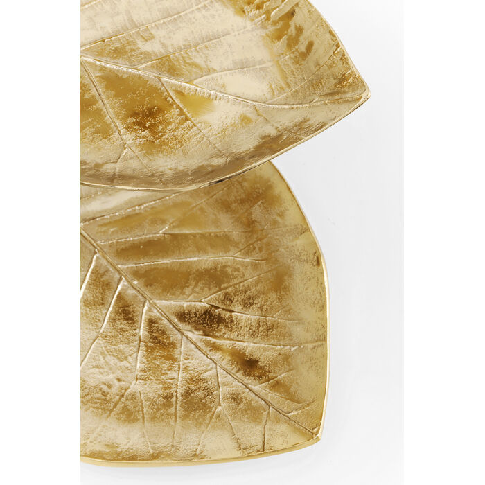 Stijlvol & praktisch: gouden etagère met bladvormige schalenDeze goudkleurige etagère is de perfecte mix van decoratie en functionaliteit! De drie bladvormige schalen bieden een elegante opbergoplossing voor sieraden, sleutels, parfums of andere kleine items. Ideaal voor de hal, slaapkamer of badkamer.Dankzij het nikkelgeplateerde aluminium is hij ook geschikt voor verpakte lekkernijen. Een echte blikvanger op je dressoir, console of plank!