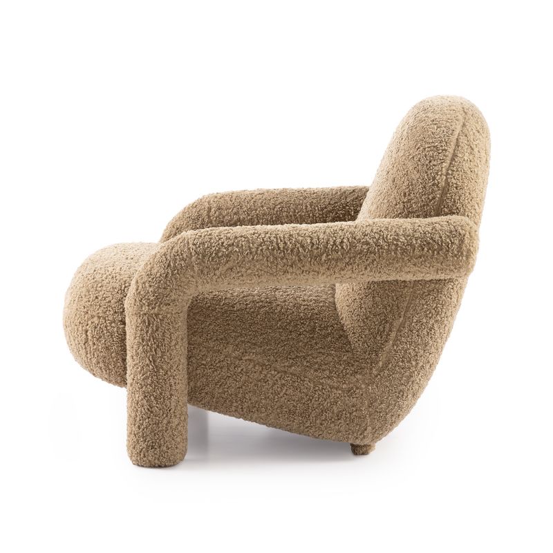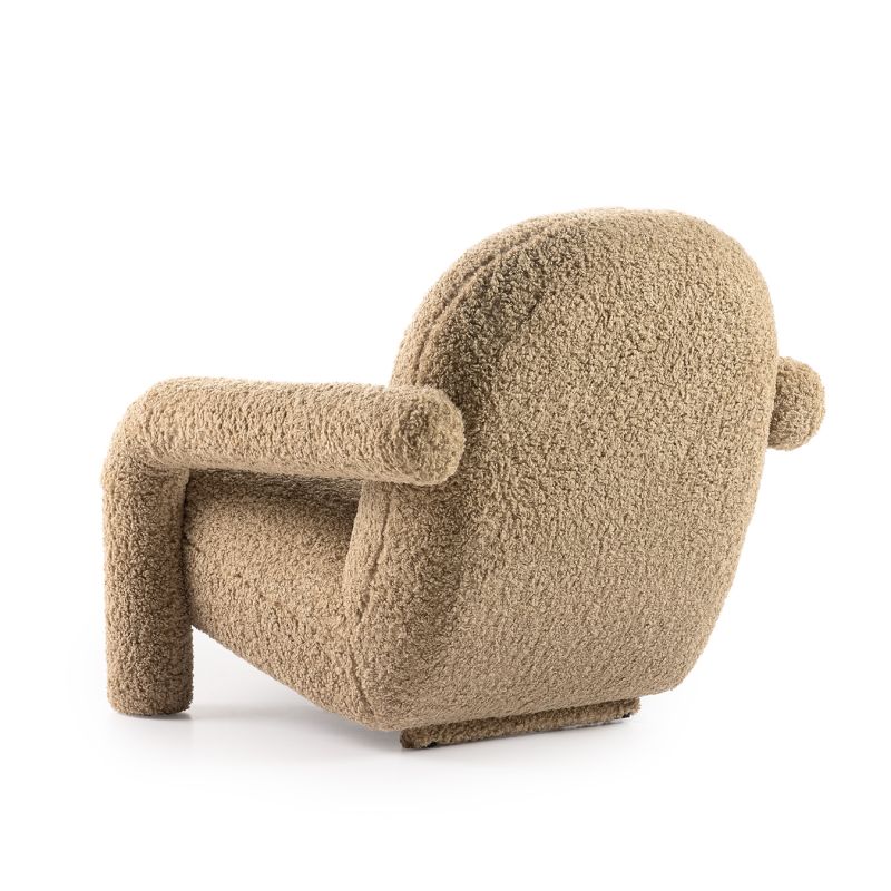 De Flinn fauteuil is de ideale mix van comfort en stijl. Met zijn zachte teddyachtige stof in de kleur beige en ronde vormen straalt hij warmte en gezelligheid uit.