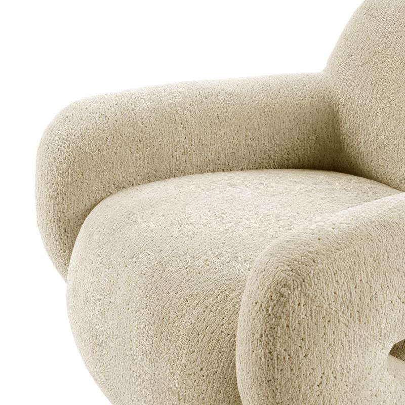 De armleuningen zijn niet alleen expressief in design, maar ook praktisch in gebruik, zodat je comfortabel kunt zitten en makkelijk kunt opstaan.