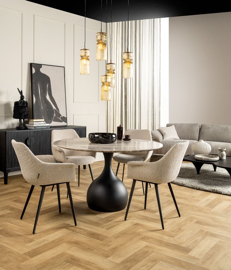 De Naomi hanglamp 5-lichts is een elegante blikvanger die jouw interieur verrijkt met stijl en warmte.