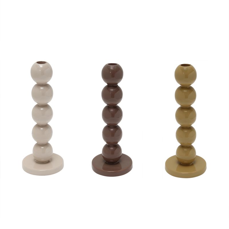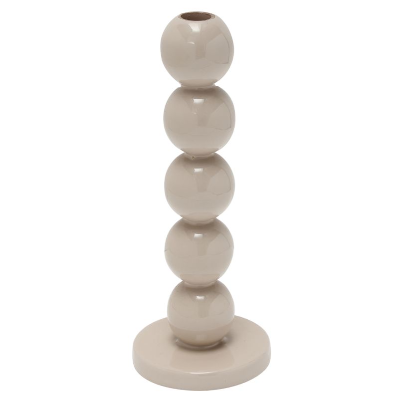 Billie is verkrijgbaar in drie kleuren – beige, mosterd en mocca – en in twee hoogtes. De hoge variant (27 cm) is perfect voor op een eettafel of gemixt in een groep met de lage kandelaar, terwijl de lage variant (17 cm) mooi tot zijn recht komt op een salontafel of een dressoir.