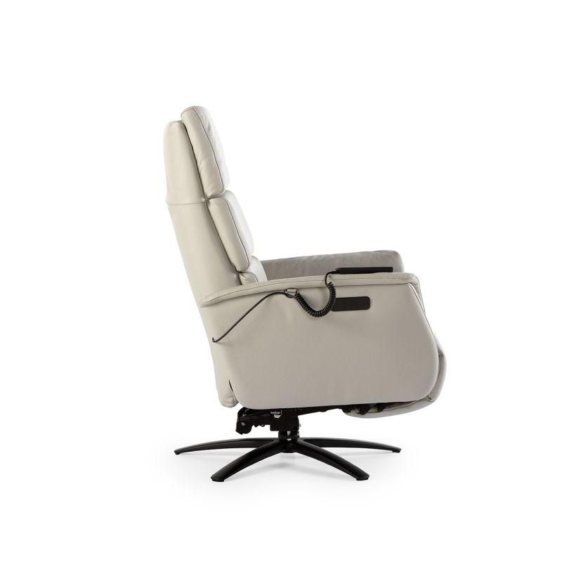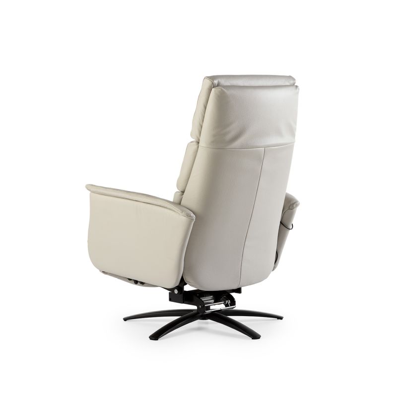 Goed om te weten: bestel je de Ian relaxfauteuil via onze webshop, dan ontvang je hem in leer Soleda, kleur Silver Grey, met metalen onderstel, draaibare functie, verstelbare hoofdsteun en sta-op functie.