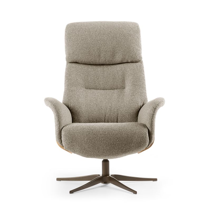 Goed om te weten: bestel je de Milas relaxfauteuil via onze webshop, dan ontvang je hem in stof Vista, kleur Light Brown, met een metalen onderstel in de kleur anodic brown en manuele bediening.