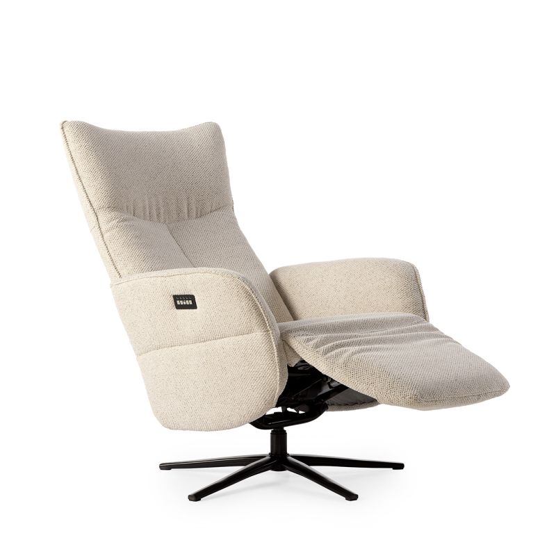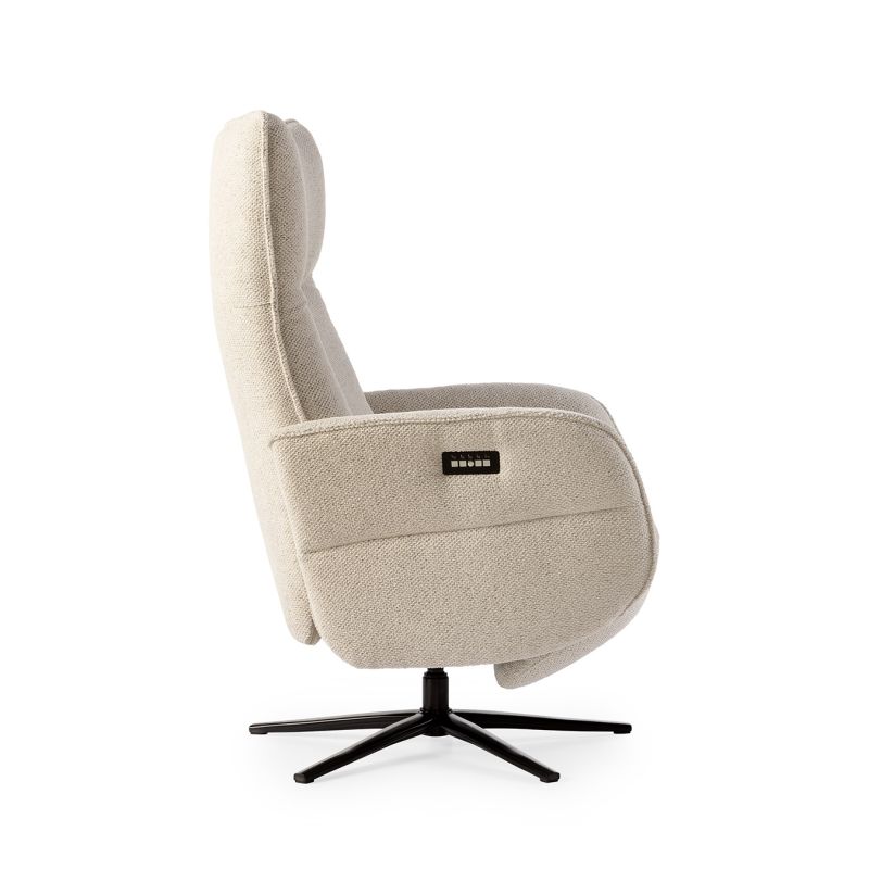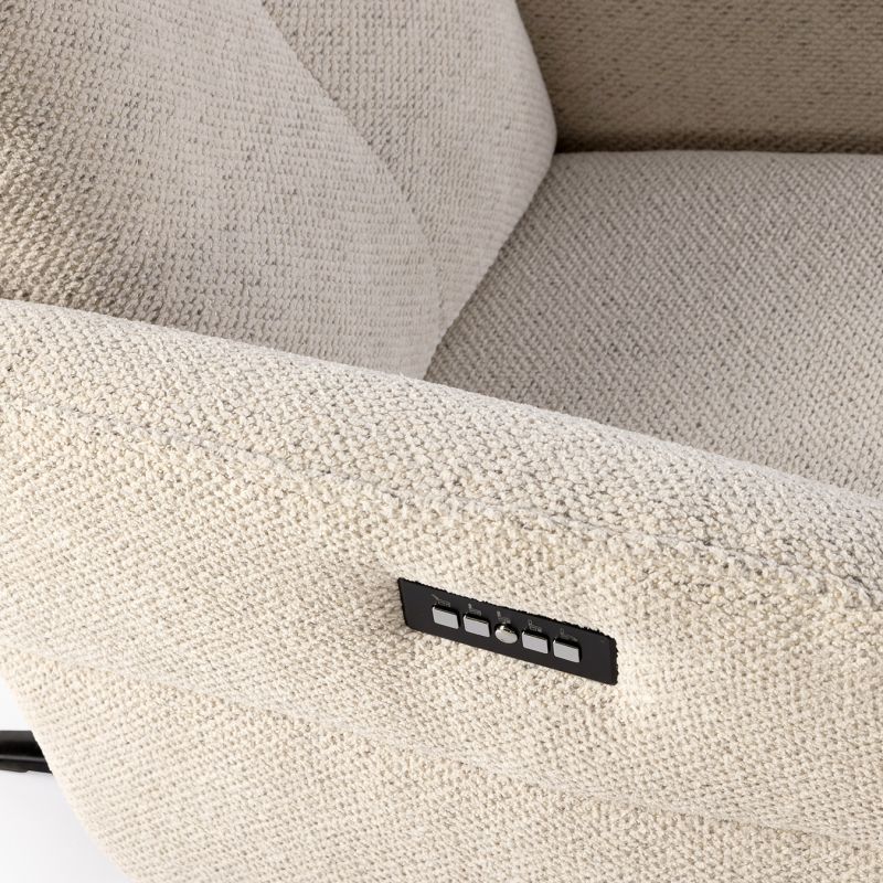 De William is elektrisch verstelbaar. Met één druk op de knop pas je de rugleuning en voetsteun aan jouw zithouding aan. De hoofdsteun is manueel verstelbaar. Zo geniet je altijd van de perfecte stand – of je nu rechtop wilt zitten met een goed boek of languit wilt ontspannen.