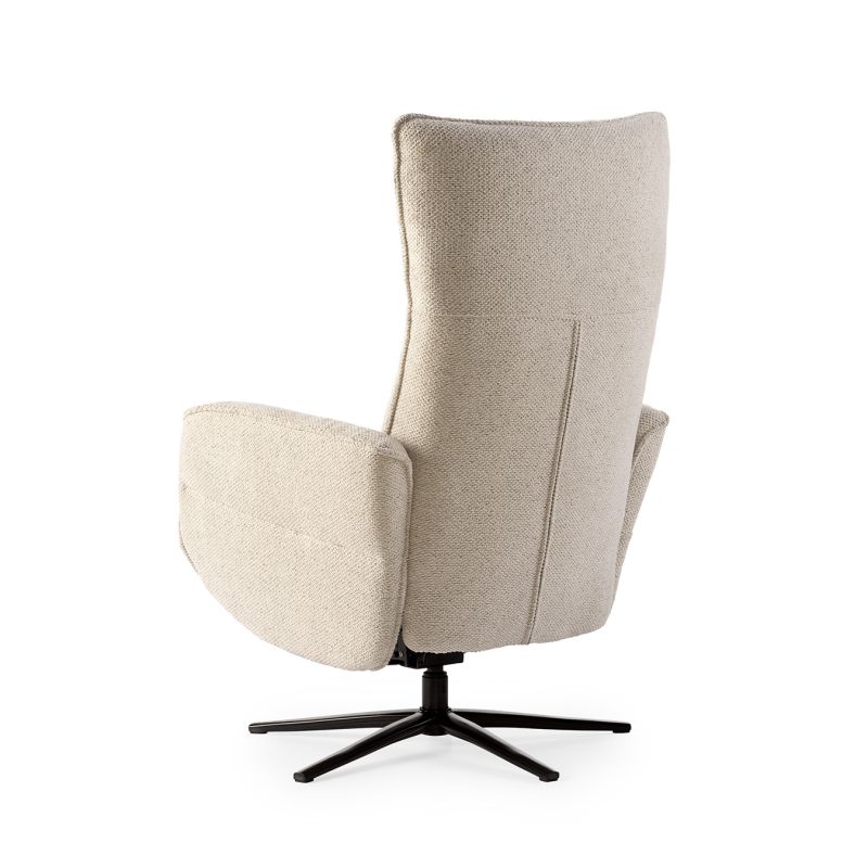 Goed om te weten: bij een bestelling via onze webshop wordt de William relaxfauteuil geleverd in stof Macan, kleur ecru, met zwart metalen onderstel, zoals getoond op de afbeeldingen.