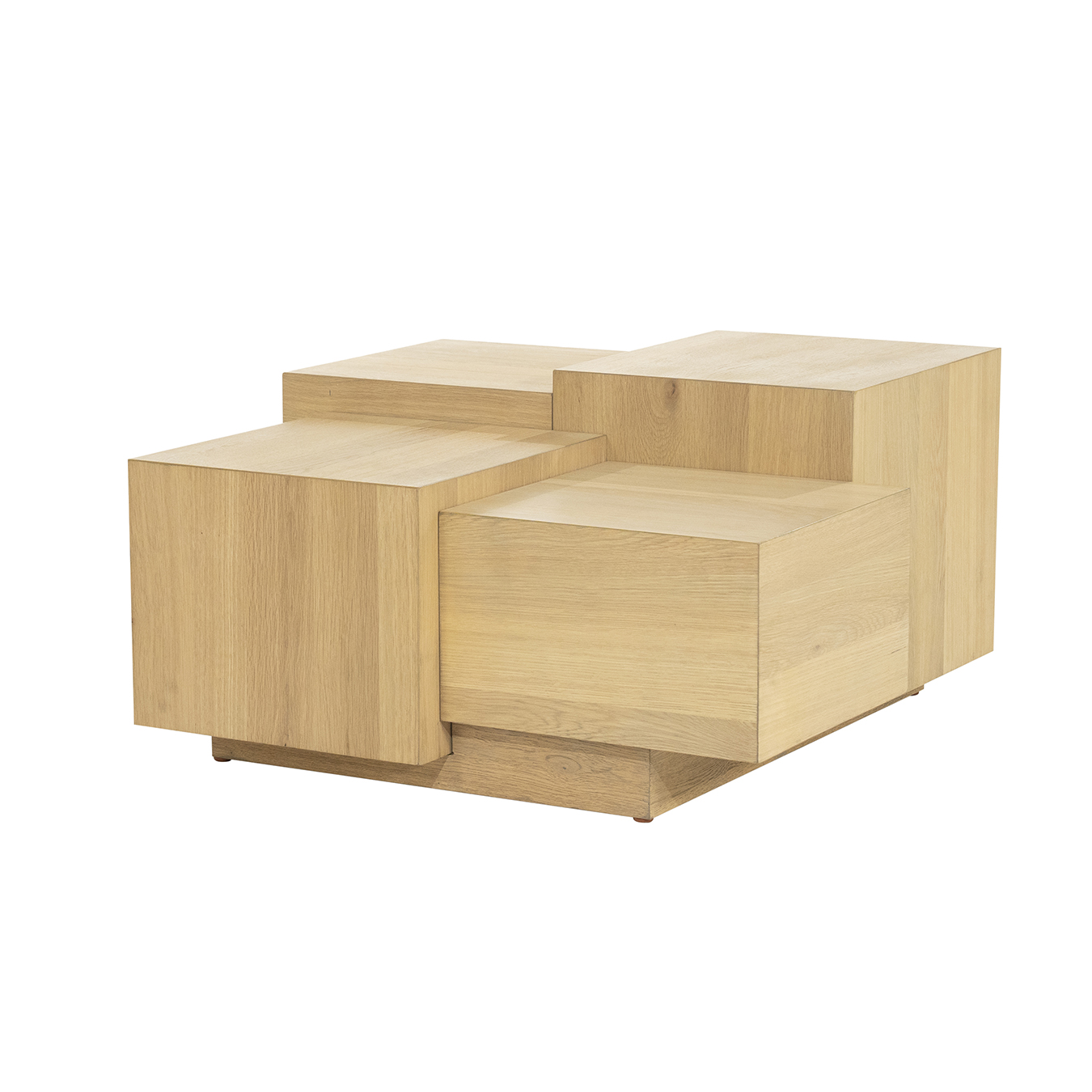 Goed om te weten: bij een bestelling via onze webshop wordt de Bloxx salontafel geleverd in eiken fineer, kleur naturel, met houten onderstel, zoals getoond op de afbeeldingen.