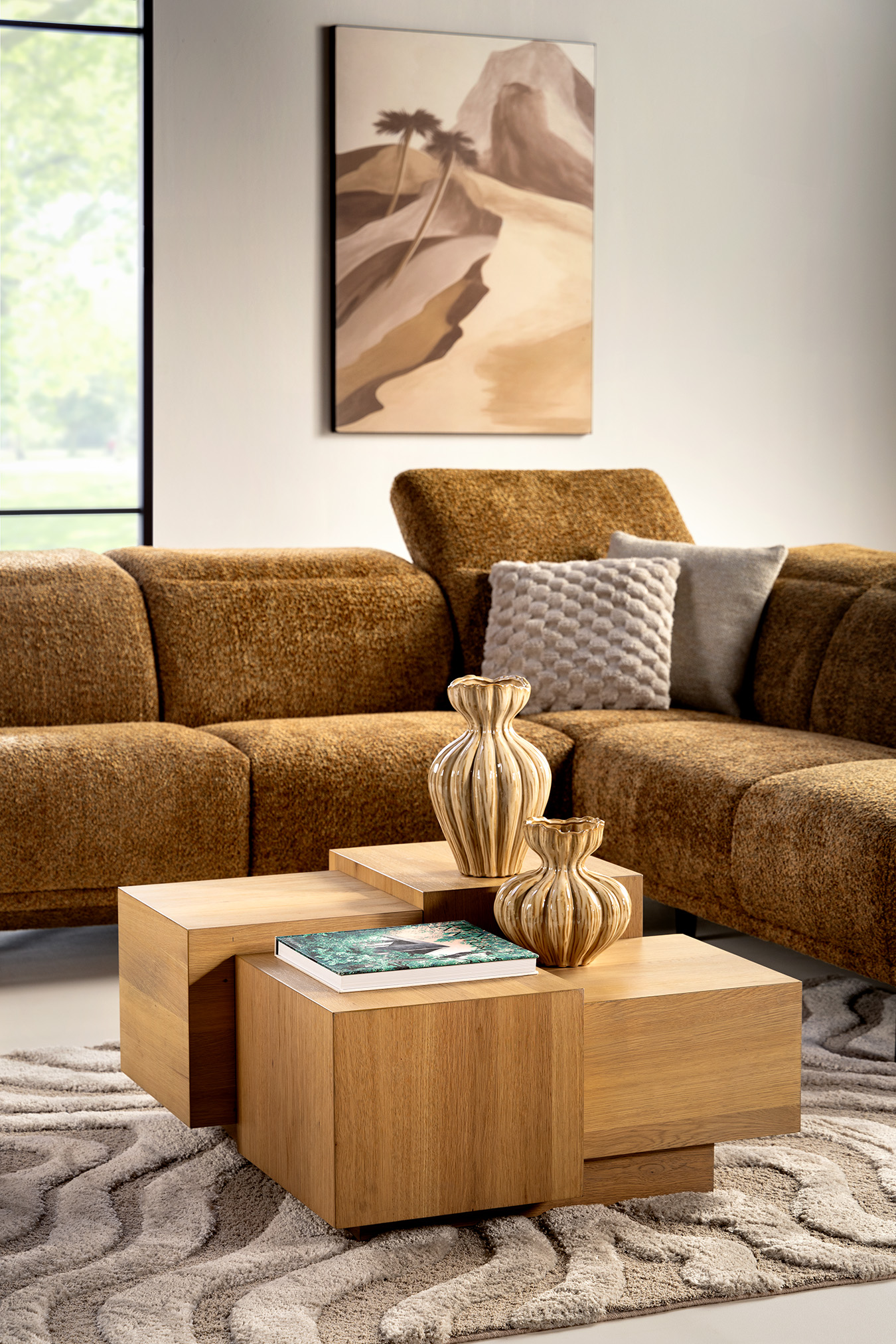 Wat de Bloxx bijzonder maakt, is de opbouw uit meerdere vierkante elementen die samen een speels geheel vormen. Dit geeft de salontafel extra diepte en karakter, waardoor hij niet alleen functioneel is, maar ook een stijlvol statement vormt in jouw interieur.