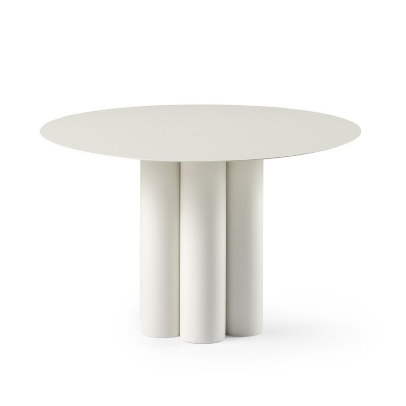 Met zijn royale ronde blad van 65 cm en het elegante ontwerp in staal uitgevoerd in de trendy greige kleur, brengt deze tafel een frisse en eigentijdse touch in huis.