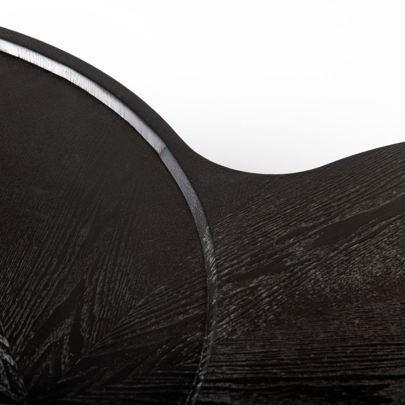 Deze prachtige tafel is gemaakt van eikenfineer in een stijlvolle zwarte kleur, waardoor hij luxe en tijdloosheid uitstraalt.