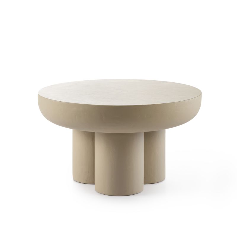 Vervaardigd uit MDF en afgewerkt met kalkpleister, straalt deze tafel natuurlijke elegantie uit.