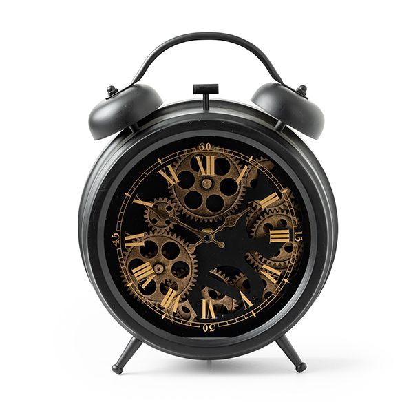 Deze tafelklok is van metaal en heeft de afmeting 26x8x35(h).