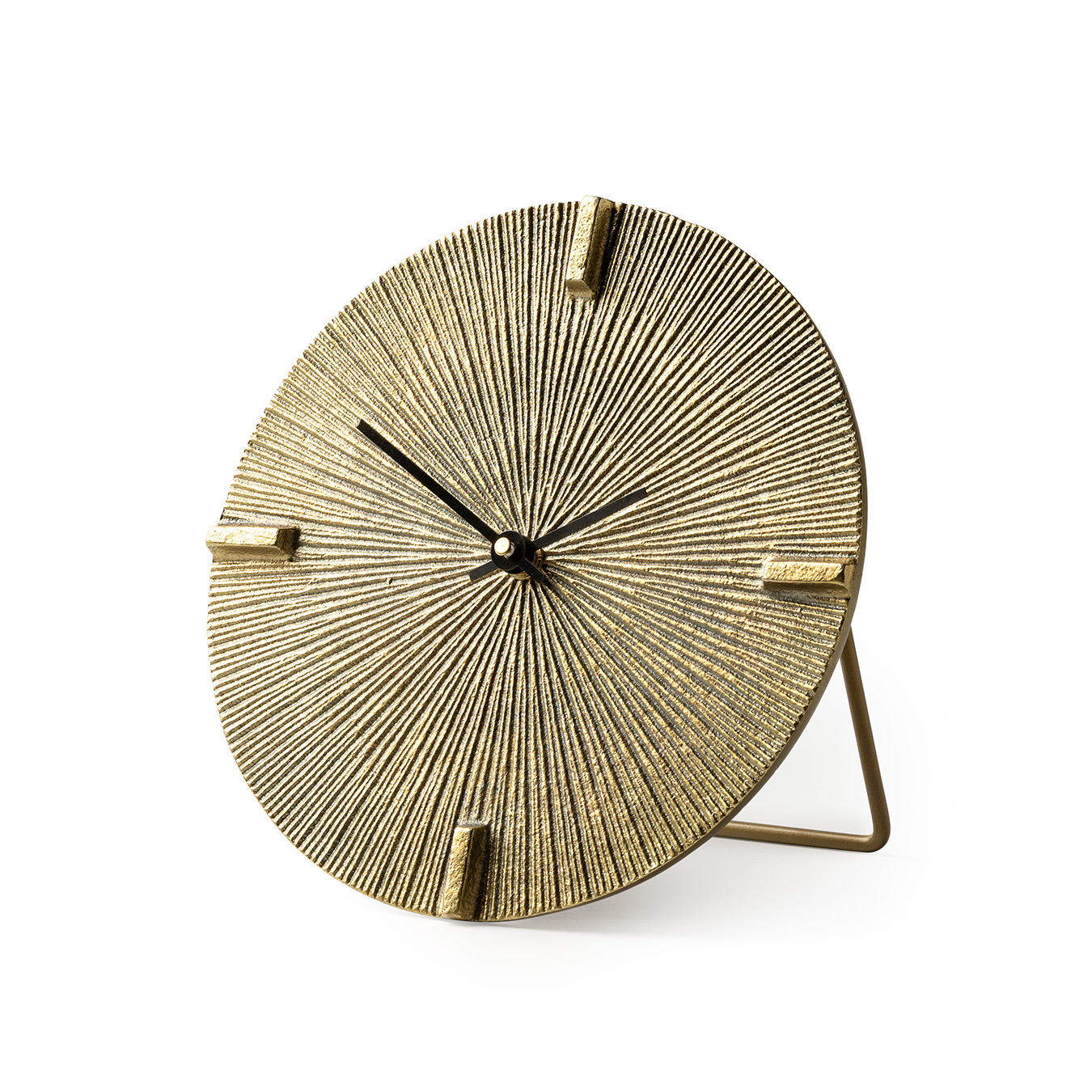 Ontdek de Suze tafelklok! Doordat de klok gemaakt is van metaal, straalt deze klok elegantie uit. Met zijn warme messingkleur voegt dat wat extra elegantie toe. De Suze tafelklok combineert hoogwaardige materialen en klassiek design, waardoor hij zowel een functionele als decoratieve aanvulling is op elke ruimte. Verken onze collectie en geef jouw interieur een vleugje stijl met de Suze tafelklok.