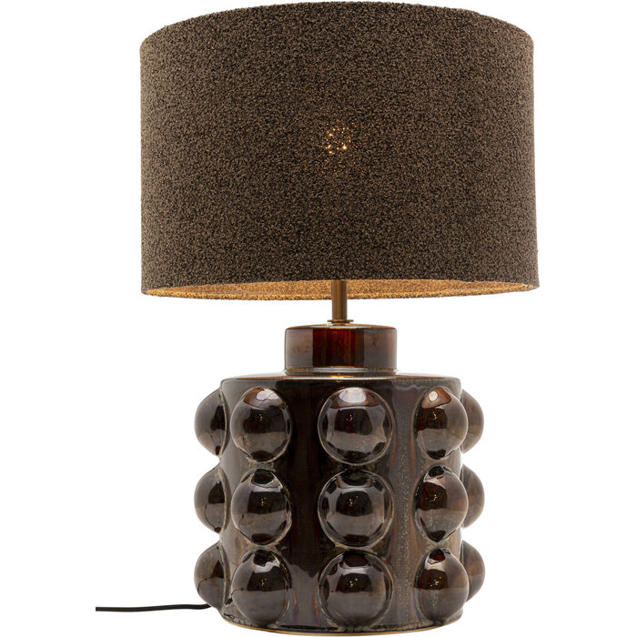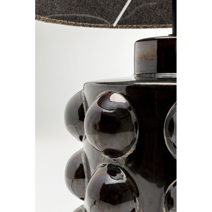 Het porseleinen onderstel is uitgevoerd met een opvallend reliëf van glanzende bollen, wat zorgt voor een speelse en toch elegante uitstraling. De donkere glans combineert prachtig met de rijke bruine kap, waardoor het licht warm en sfeervol wordt verspreid.Calamaro is royaal van formaat en daardoor niet zomaar een lamp, maar een statement piece dat jouw interieur naar een hoger niveau tilt.