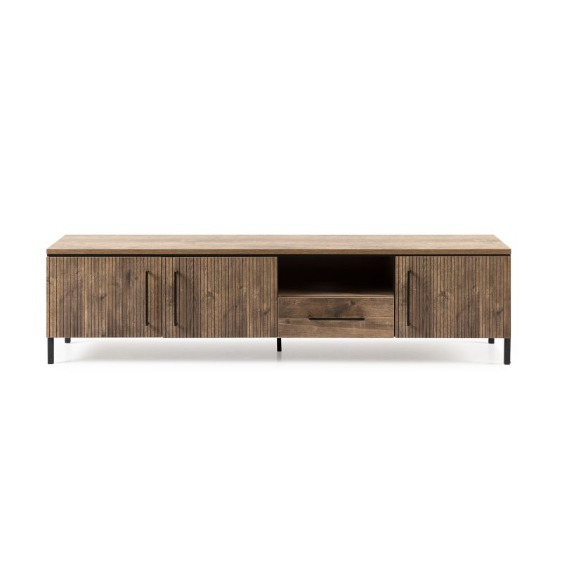 Dankzij de 3 deuren, 1 lade en 1 open vak heb je volop ruimte voor al jouw entertainmentbenodigdheden. Van spelconsoles en dvd’s tot afstandsbedieningen en kabels – alles is netjes opgeborgen en toch binnen handbereik. Het open vak is ideaal voor apparatuur of een decoratief accent, waardoor je het meubel eenvoudig een persoonlijke touch geeft.