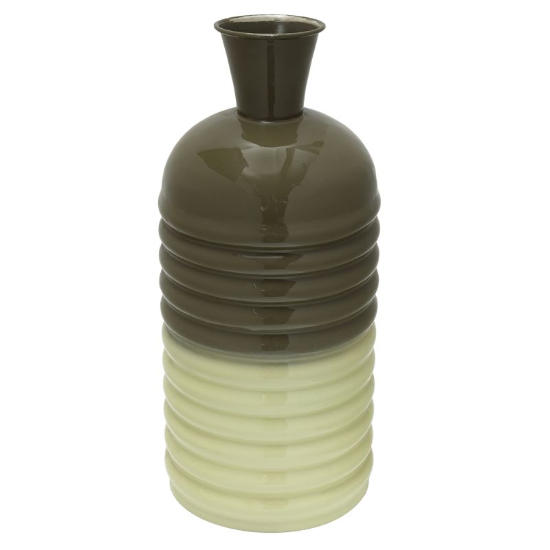 De opvallende combinatie van groentinten maakt deze vaas een echte blikvanger. Het golvende reliëf geeft de vaas een moderne twist, terwijl de elegante vorm juist zorgt voor een tijdloze uitstraling.