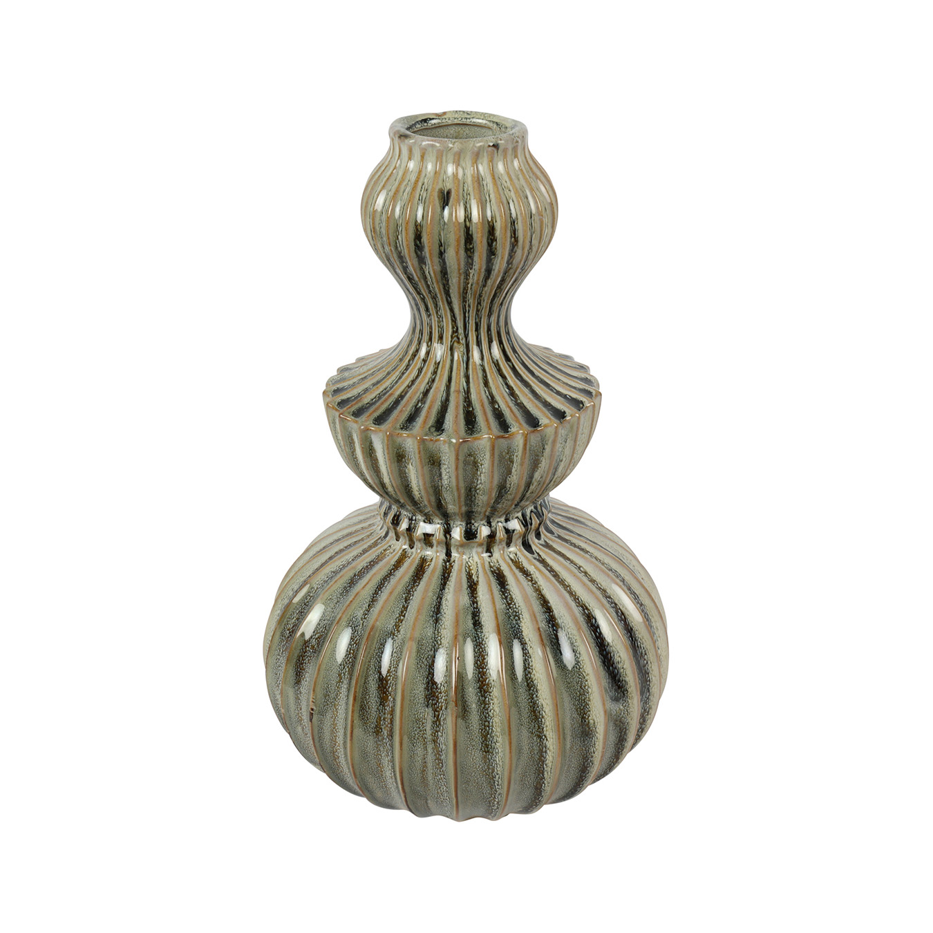 De Vaas Moïs groen/beige 32 cm brengt een natuurlijke uitstraling in jouw interieur. Deze aardewerken vaas in groen en beige heeft een diameter van 20 cm en een hoogte van 32 cm.