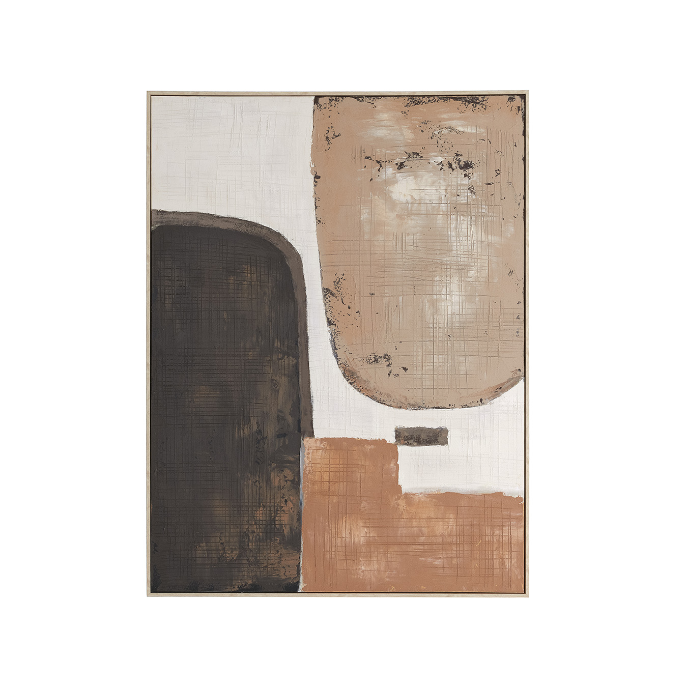 Wanddeco Zirello is een kunstwerk dat rust én karakter samenbrengt. De combinatie van warme aardetinten, diepe donkere accenten en zachte crèmekleuren zorgt voor een krachtig, maar uitgebalanceerd geheel. Een echte blikvanger die jouw muur laat spreken.